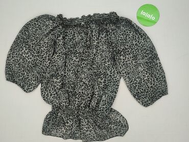 Bluzka damska z krótkim rękawem, transparentna, w panterkę (czarno-szary wzór). - Krój: luźny, oversize, lekko krótszy przód i nieco dłuższy tył. - Dekolt: okrągły z tyłu efektowna, ażurowa wstawk...