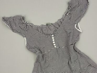 Bladoróżowa bluzka damska hiszpanka - Krój: odkryte ramiona (hiszpanka) z szeroką, marszczoną gumką wokół dekoltu i ramion - Rękaw: krótki, lekko rozszerzany - Rozmiar: S (na metce „WOMEN S”) - Ma...