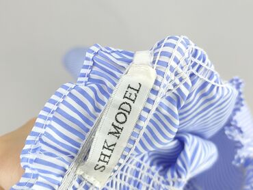 Bluzka damska SHK Model w paski - Fason: hiszpanka z odkrytymi ramionami (elastyczna, marszczona gumka przy dekolcie) - Rękawy: krótkie, z delikatną falbanką - Kolor/wzór: białe i jasnoniebieskie,...