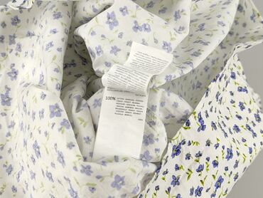 Bluzka damska HOUSE, rozmiar M - Krój: luźny T-shirt z okrągłym dekoltem - Rękawy: krótkie, z dekoracyjnymi wiązaniami na ramionach - Wzór: białe tło w niebieskie pionowe paski, nadruk ptaków na c...