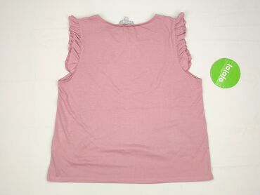 Czerwona damska bluzka bez rękawów - Krój: luźny, lekko wydłużony tył z zaokrąglonym dołem - Dekolt: V-neck wysmuklający szyję - Rękawki: krótkie, z delikatną falbaną przy ramionach - Materiał: le...Stan: