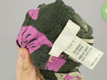 Bluzka damska marki Tu Woman w rozmiarze 14, idealna na letnie dni. Wyróżnia się wielobarwnym wzorem w słonie, który nadaje jej oryginalny i etniczny charakter. Ten swobodny krój zapewnia komfort n...Używana bluzka damska marki Diesel, rozmiar S. Wykonana w 100% z bawełny. Bluzka jest w idealnym stanie i posiada ciekawy, roślinny wzór w odcieniach zieleni i różu. Doskonała na lato.