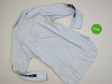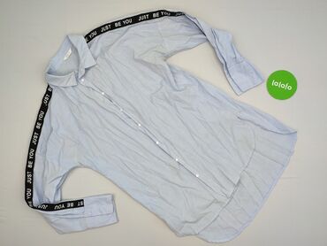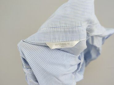 Koszula damska w paski - Krój: klasyczna koszula zapinana na guziki z kołnierzykiem, długie rękawy z mankietami na guziki - Wzór: drobne pionowe paski w kolorze błękitno-białym - Rozmiar z metki: ...