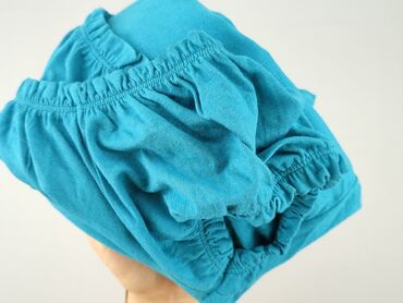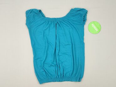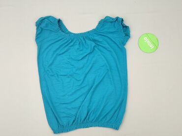 Niebieska bluzka damska z krótkim rękawem, charakteryzująca się marszczeniami na dekolcie oraz na dole i przy rękawach, co nadaje jej luźny i wygodny styl. Okrągły dekolt jest szeroki, umożliwiając noszenie bluzki na ramionach. Wykonana z lekkiego, elastycznego materiału, idealna na codzienne, swobodne stylizacje.
