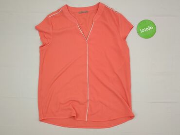 Krótki rękawBluzka damska marki Orsay w kolorze koralowym, charakteryzująca się dekoltem w serek i krótkimi rękawami. Ozdobne, białe lamówki biegną wzdłuż dekoltu i na ramionach, dodając jej elegancji. Bluzka idealnie sprawdzi się w codziennych stylizacjach, zapewniając komfort noszenia. Dostępna w rozmiarze L, co czyni ją odpowiednią dla osób poszukujących luźniejszego fasonu. Bluzka jest używana, ale w idealnym stanie, co gwarantuje długie i satysfakcjonujące użytkowanie. Jej uniwersalny design sprawia, że łatwo dopasuje się do różnych elementów garderoby, zarówno do spodni, jak i spódnic. Ten element odzieży jest praktycznym i stylowym dodatkiem do każdej kobiecej szafy.