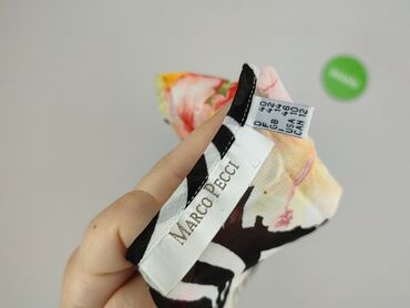 Bluzka damska marki Marc Angelo w rozmiarze 8. Charakteryzuje się wzorem w kwiaty w żywych kolorach: pomarańczowym, zielonym, żółtym, fioletowym i różowym na granatowym tle. Bluzka ma dekolt w kszt...