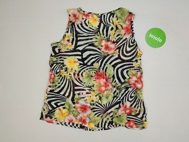 Damska bluzka na ramiączkach w stylu patchwork. Bluzka charakteryzuje się wzorem z motywami zwierzęcymi, takimi jak cętki i paski zebry, w odcieniach czerni, bieli, beżu i zieleni. Bez rękawów, z o...