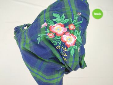 Rękaw 3/4Bluzka damska z długim rękawem, w kratę w odcieniach niebieskiego i zieleni. Dekolt okrągły, z tyłu rozcięcie zapinane na guzik. Na przodzie i rękawach umieszczony jest haft przedstawiający kwiaty w odcieniach różu, beżu i zieleni. Dół bluzki jest zaokrąglony i ma rozcięcia po bokach. Rękawy są luźne i wykończone prostym mankietem. Bluzka może być noszona na co dzień, do pracy lub na specjalne okazje, pasuje do wielu stylizacji. Idealna dla kobiet ceniących sobie komfort i styl.