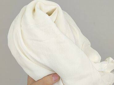 Biała bluzka damska z krótkim rękawem - Fason: luźny, oversize; lekko opadające rękawy - Dekolt: w kształcie litery V z krótką stójką - Materiał: 100% poliester (metka na zdjęciu) - Rozmiar z metk...