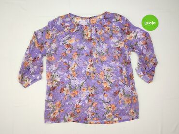 Bluzka damska w kwiatowy wzór - Krój taliowany, podkreślający sylwetkę - Dekolt okrągły - Krótkie, lekko bufiaste rękawy - Długość do bioder - Tkanina lekka, miękka w dotyku - Wzór: gęsty, fioleto...