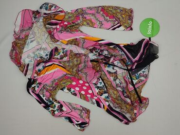 Bluzka damska z długim rękawem, w kwiatowy wzór. - Kolor bazowy: zgaszony róż/łosoś - Wzór: wielobarwne kwiaty (odcienie różu, bieli, żółci, czerwieni, brązu) - Fason: swobodny, lekko opadające ram...