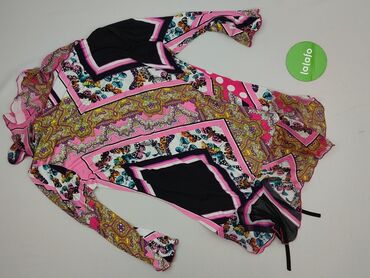 Długi rękawBluzka damska marki Must z długimi rękawami i kołnierzem, wyróżniająca się wzorzystym nadrukiem. Dominujące kolory to różowy, czarny i żółty, z dodatkiem białego, niebieskiego i fioletowego. Wzór obejmuje elementy paisley, paski, motyle oraz kropki, co nadaje jej dynamiczny i unikalny charakter. Bluzka jest zapinana na guziki, a jej luźny krój zapewnia wygodę noszenia, idealnie pasując do wielu stylizacji. Wykonana z lekkiego materiału, świetnie sprawdzi się na różne okazje.