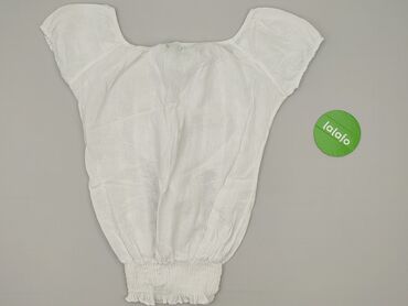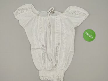 Biała bluzka hiszpanka HOUSE BRAND - Krój: odsłaniający ramiona (hiszpanka) z marszczonym dekoltem wykończonym falbanką - Rękawy: krótkie, bufiaste, z szerokimi elastycznymi mankietami - Rozmiar z...