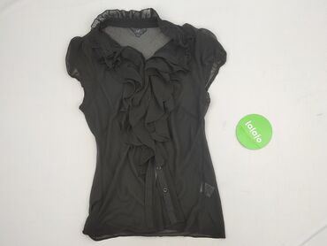 Bluzka damska Reserved, rozm. 36 - Kolor: czarny - Materiał: 100% poliester (lekki, lekko prześwitujący) - Fason: luźniejsza, z zaokrąglonym dołem (tył nieco dłuższy) - Rękaw: 3/4 - Kołnierzyk: oz...