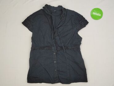 Bluzka/tunika damska H&M - Kolor: czarny - Krój: tunika z krótkim rękawem, dekolt okrągły - Zapięcie: listwa z 7 guzikami z przodu - Detale: delikatne marszczenia przy dekolcie i pod biustem, lekk...