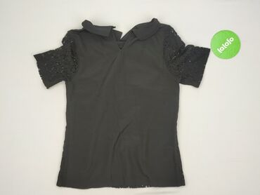 Czarna koronkowa bluzka damska H&M - Rozmiar z metki: M (EUR/US/CA/CN/MX M) - Fason: prosta, z krótkim rękawem; okrągły dekolt, z tyłu niewielkie rozcięcie zapinane na guzik - Materiał: - wierzc...