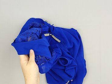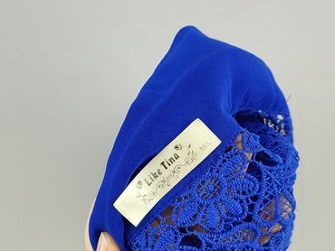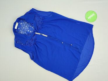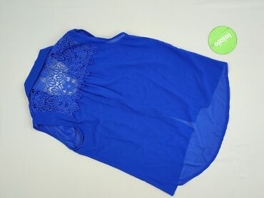 Bluzka bez rękawów w kolorze kobaltowym - Krój: luźny, długość do bioder, lekko zaokrąglony dół - Dekolt: z wiązaniem/krawatką z przodu; stójka przy szyi - Materiał: fakturowana tkanina o marszczo...Stan: