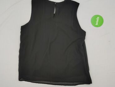 Czarna bluzka bez rękawów Anne Smith, rozmiar XL - Krój: prosty, bez rękawów, okrągły dekolt - Detale: szeroki pas z koronką na piersi; dół wykończony frędzlami z drobnymi koralikami, które subtel...