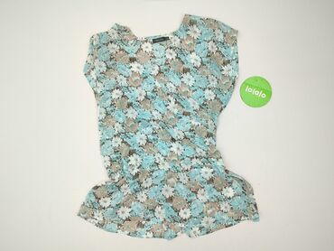 Bluzka damska w kwiaty - Krój: luźny, prosty, z krótkimi, falbaniastymi rękawami typu motylek - Dekolt: okrągły, z lekkim marszczeniem - Zapięcie: rząd małych guzików z przodu - Wzór: gęsty, wielo...Stan: