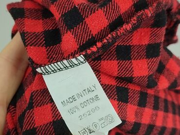 Ta damska bluzka w kratę to luźny element garderoby, idealny na co dzień. Charakteryzuje się wzorem w kratę, łączącym odcienie bieli, czerwieni i szarości. Bluzka posiada krótkie rękawy i okrągły d...Stan:
