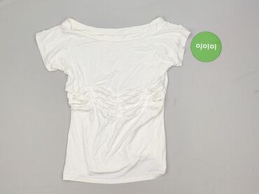 Biała koszulka damska z krótkim rękawem - Marka: Apsara (na metce) - Rozmiar: S - Fason: klasyczny T-shirt, okrągły dekolt - Kolor: biały - Materiał: lekka, miękka dzianina (na zdjęciach widać str...