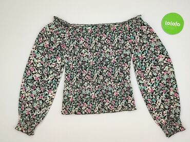 Bluzka damska Mohito Collection, rozmiar 38 - Wzór: kwiatowy na czarnym tle - Fason: lekko dopasowany, z elastycznymi marszczeniami (smocking) na karczku i w talii - Rękawy: długie, zakończone ela...