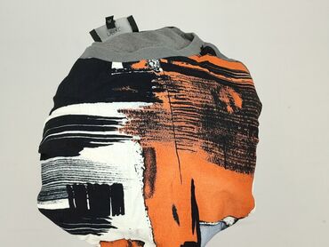 - Przód: tkanina z fakturą i nadrukiem w stylu abstrakcyjnym (pomarańcz, czerń, biel, szarość)