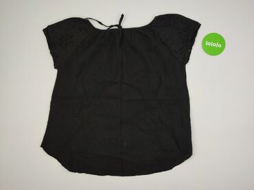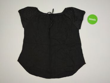 Czarna bluzka damska z ażurowym wzorem - Krój: luźny, opuszczone ramiona, krótkie rękawy - Dekolt: w kształcie litery V - Materiał: 95% poliester, 5% spandex – lekko elastyczny, miękki, przewiewny...
