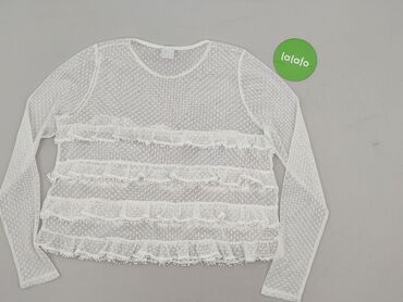 Bluzka damska Gina Benotti - Rozmiar z metki: M (40/42) - Fason: lekko luźny, długi rękaw - Dekolt: w kształcie litery V bez kołnierzyka - Wzór: biała w duże, niebieskie kratki z rysunkowym efekte...