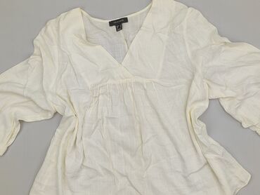 Bluzka damska Primark - Kolor: biały z czarną lamówką przy dekolcie - Krój: luźny, z dekoltem w kształcie litery V - Rękaw: długi, mankiety zapinane na dwa guziki - Materiał: lekka, zwiewna tkanin...