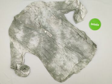 Bluzka damska z długim rękawem, wzór geometryczno-kwiatowy w odcieniach zieleni i bieli. - Fason: koszulowy, z kołnierzykiem - Zapięcie: listwa z kilkoma guzikami z przodu - Rękawy: długie - Mater...