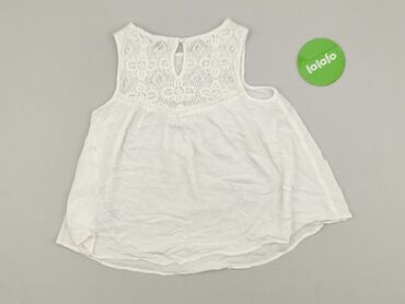 Biała bluzka bez rękawów New Look - Materiał: lekka, miękka dzianina z podszewką; przód pokryty ażurową koronką o kwiatowym motywie - Fason: prosty, zwiewny; lekko dłuższy tył - Dekolt: okrągły z ...