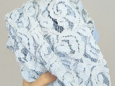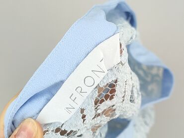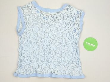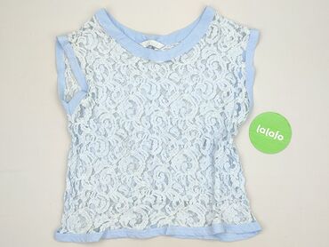 Bluzka bez rękawów w kolorze jasnoniebieskim. - Krój koszulowy, zapinana z przodu na rząd białych guzików. - Dwie naszywane kieszonki na piersi. - Góra i karczek z tyłu wykonane z ażurowej koronki...