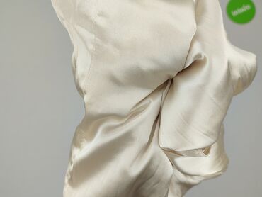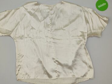 Elegancka bluzka satynowa w kolorze kości słoniowej/ecru. - Krój: luźny, prosty, lekko zaokrąglony dół z gumką ściągającą, krótkie rękawki-cap. - Dekolt: w kształcie litery V z delikatnym obszycie...