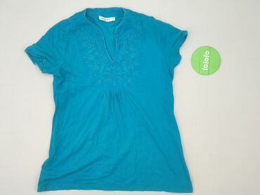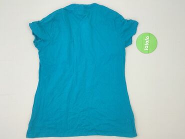 Bluzka damska Yessica (C&A), rozmiar S. - Kolor: intensywny turkus/niebieski - Krój: luźna koszulka z krótkim rękawkiem typu kimono, okrągły dekolt - Przód: panel z satynowym połyskiem z dużym, ma...