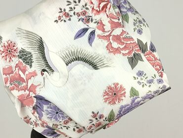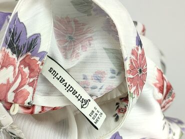 Bluzka damska w kwiaty, rozmiar S - Kolor: kremowo-biały z drobnym, wielobarwnym, akwarelowym wzorem kwiatowym (róże, błękity, zielenie, żółcie). - Krój: luźny, lekko wydłużony tył; półokrągły dek...