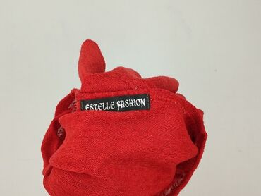 Czerwona bluzka damska z miękkiej, elastycznej dzianiny. - Fason oversize z krótkimi, opadającymi rękawkami (kimono). - Okrągły dekolt. - Dół lekko ściągnięty szerokim pasem, który ładnie układa si...
