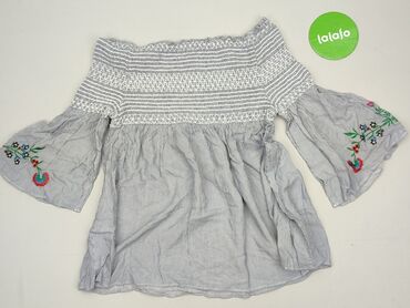 Bluzka hiszpanka DIVIDED (H&M) – rozmiar S - Krój: krótka bluzka typu off-shoulder (odkryte ramiona) z elastyczną gumką przy dekolcie i w dole, lekko bufiaste, długie rękawy z gumką przy mankietac...