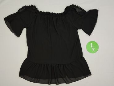 Czarna bluzka hiszpanka z falbaną - Krój: odkryte ramiona (hiszpanka) z szeroką falbaną wokół dekoltu - Materiał: 100% wiskoza – lekka, przewiewna, z drobną, kreszowaną fakturą - Kolor: czarny - R...
