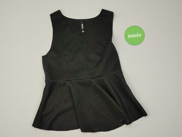 Bluzka damska Sinsay, rozmiar L. - Kolor: czarny w drobny, biały, kwiatowy wzór. - Krój: kobiecy top bez rękawów z falbanami na ramionach; dekolt w kształcie litery V; lekko zaokrąglony dół. - Mate...