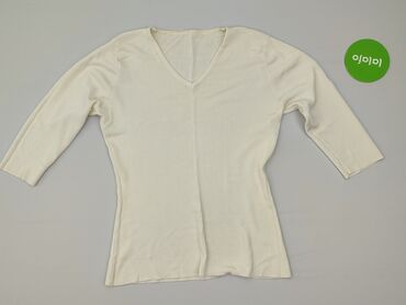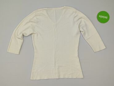 Bluzka damska z dzianiny, biała. - Krój prosty, swobodny - Dekolt w kształcie litery V z delikatnym haftem/ażurową aplikacją i subtelnymi koralikami - Rękaw 3/4 - Boczne rozcięcia u dołu dla więks...