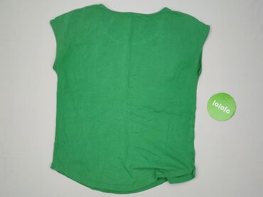 Bluzka damska w kolorze soczystej zieleni. - Krój: dopasowany, z okrągłym dekoltem - Rękawy: krótkie, z efektowną koronką o ażurowym, geometryczno‑kwiatowym wzorze - Tył: wstawka z tej samej koron...Stan: