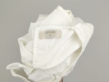 Bluzka damska z krótkim rękawem, kremowa/ecru. - Krój: luźny, prosty, z krótkimi rękawami i niewielkimi rozporkami po bokach u dołu. - Dekolt: okrągły, zdobiony ażurową wstawką/koronkową lamówką. ...
