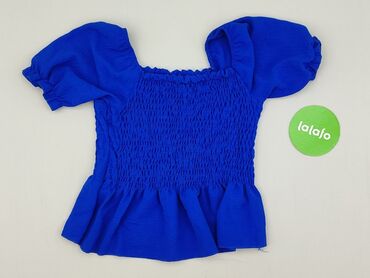Bluzka damska z krótkim rękawem w kolorze kobaltowym. - Materiał: 50% bawełna, 50% jedwab (etykieta na zdjęciu) - Lekko marszczona/krepa faktura tkaniny – przewiewna i miękka - Dekolt okrągły - As...