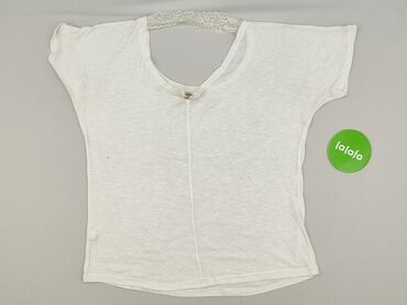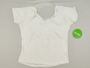 Bluzka damska King – rozmiar 40 - Kolor: ecru/biel - Fason: lekko rozkloszowana, z zaokrąglonym dołem; tył z delikatnymi marszczeniami - Dekolt: okrągły - Rękawy: krótkie, wykonane z ażurowej koro...