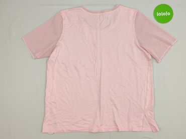 Bluzka damska M&H New Collection, rozmiar z metki XL/XXL. - Kolor: różowy - Fason: prosta bluzka z krótkim rękawem - Przód i rękawy z ażurowej koronki w kwiatowy wzór; dół wykończony ozdobną falą ...