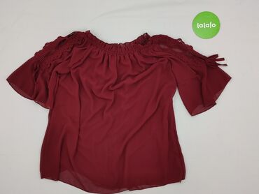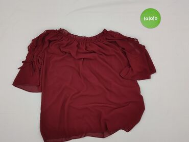 Bluzka damska w kolorze burgundowym z lekkiego, półprzezroczystego szyfonu. - Krój: luźny, z falbaną biegnącą przez przód i ramiona. - Rękawy: długie, zwiewne, zakończone delikatną gumką. - Dekolt...Stan: