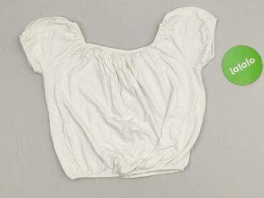 Biała bluzka hiszpanka z krótkim rękawem i wiązaniem - Krój: hiszpanka – szeroki dekolt opuszczany na ramiona, falbana wokół dekoltu - Rękaw: krótki, lekko bufiany - Dół: przedłużony z troczkiem d...