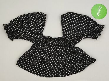 Bluzka Urban Outfitters – XS - Krój: krótka, zapinana z przodu na guziki - Rękawy: 3/4 z lekkim marszczeniem - Dekolt: z delikatną falbanką przy krawędzi - Wzór: drobne czarne kropeczki na białym ...