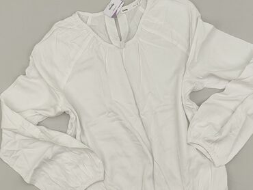 Bluzka Sinsay, rozmiar L - Kolor: ecru/kremowy - Fason: luźny, z dekoltem w kształcie litery V - Rękawy długie z mankietami zapinanymi na guzik - Kieszonka naszyta na lewej piersi - Tył z karczkie...
